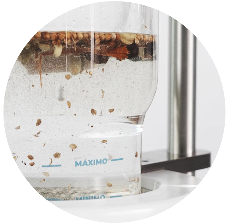 Existen diferentes métodos para producir gin. Es posible realizar una maceración del enebro solo o junto con otros botánicos antes de la destilación, o bien optar por una maceración en caliente utilizando el complemento soxhlet del equipo para concentrar los componentes.