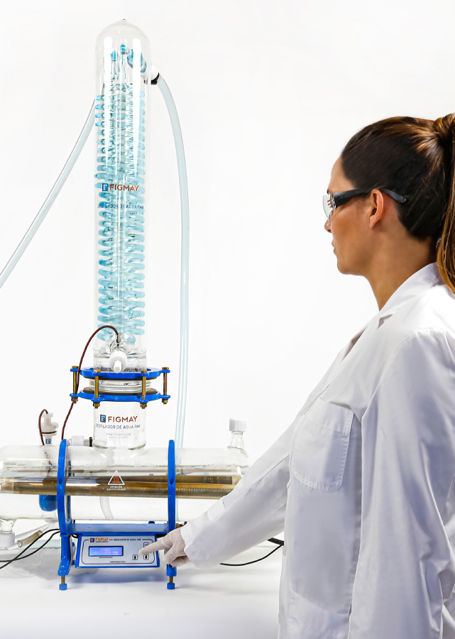Al estar fabricado íntegramente en Vidrio Borosilicato se evita la presencia de sustancias contaminantes, lo que nos asegura que el Agua Destilada sea de excelente calidad.