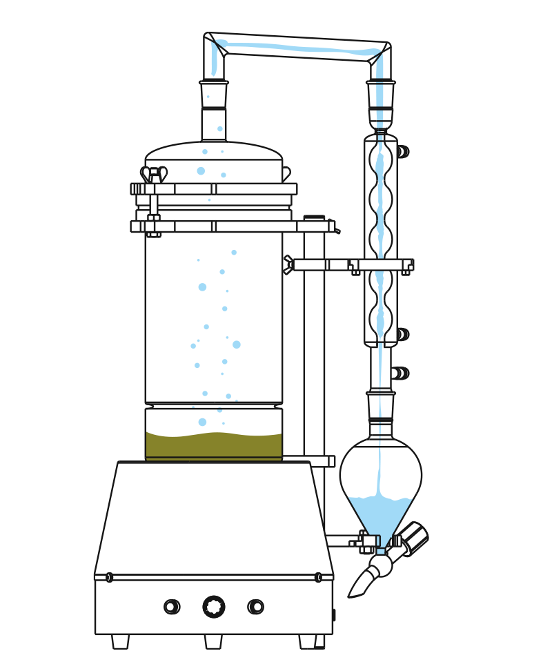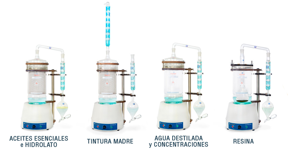 El equipo Extractor de Tintura Madre Figmay® realiza la extracción de los principios activos de diferentes hierbas en cuestión de horas, ya que permite realizar destilaciones a reflujo, es decir, extraer compuestos lipídicos (principios activos) de un sólido mediante el vapor de un solvente (alcohol).